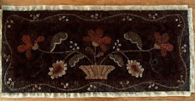 I finally have been hooking. Just a mindless hit 'n miss runner that I am making for a friend's May birthday. It will end up being about 4 1/2' long with each square being just over 4". I am about half done and getting bored. Something different will soon be on the frame!
