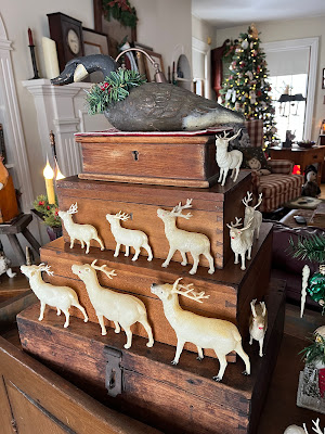 The big tree is always the last thing decorated and the last thing put away, so it's only apropos to show it last. I think I have a bit of a love/hate relationship with it. My old artificial tree had seen better days, so last year after Christmas I purchased a new one. I have many heavy ornaments and I love that this tree has stiff branches making it easier to hang them. However, I have never had a tree with such a perfect shape. I prefer a tree that is rather wonky. This year on my Facebook page, lots of wonky trees kept popping up (I guess big brother is really watching, isn't he?) but I could not justify buying yet another. So . . . this one will have to do for at least a few years.