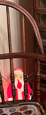 This rug was started at a hook in late in October. The pattern is about 18" x 30" and should not have taken so long to hook! You would think this is the first rug I ever hooked the way I struggled. The background was challenging for me, but it was the rooster combs and heads that gave me fits. They were each hooked a few times. I also changed the color of the beaks. Last night I decided to call it done, but upon throwing the rug on the floor I decided left rooster's head was too flat.