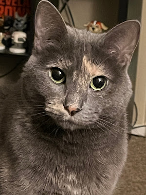 And speaking of black dogs, Molly is still seizure free, but is having great difficulty walking. It is just heartbreaking to see her dragging herself across the floor. That gray face just melts my heart.