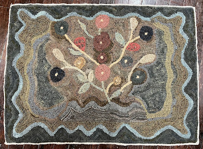 Love Birds is hooked, bound AND labeled. Two 2022 class rugs done and one to go (that should take me all of a half hour to fix the eyes!). It is actually a little more drab in person.